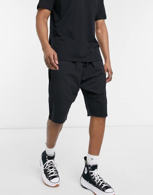 ASOS DESIGN drop crotch shorts in black | ASOS
