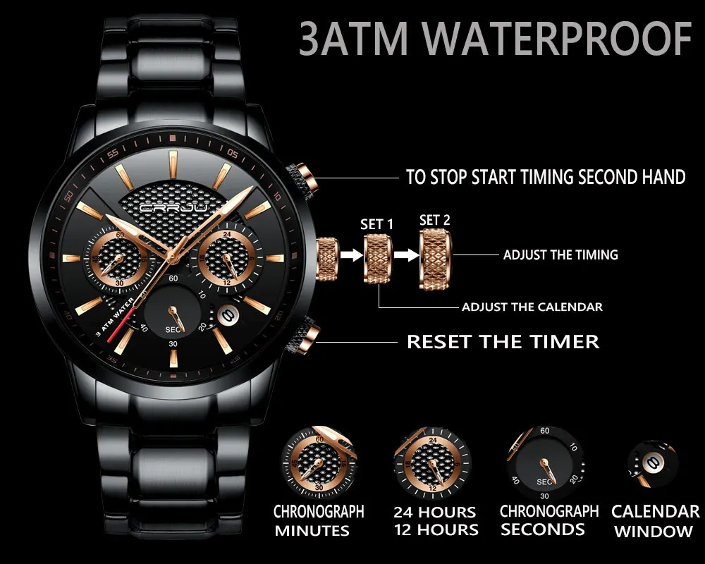 CRRJU Men Watch 30m Waterproof Mens